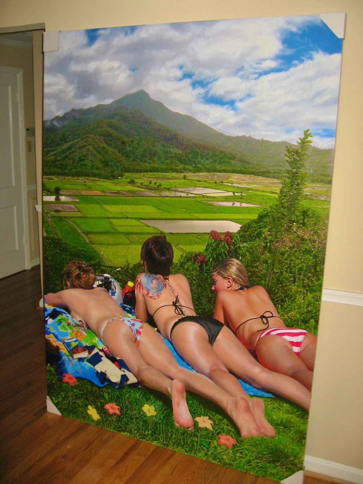Oil painting at Hanalei Valley, Kauai, Hawaii.